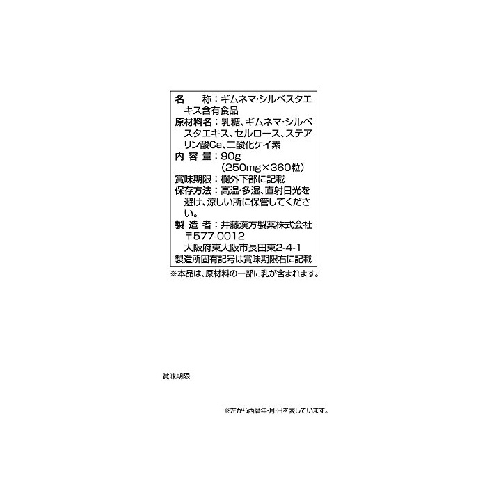 원본상품명: 井藤漢方製 ギムネマシルベスタ 約30日 250mgX360粒