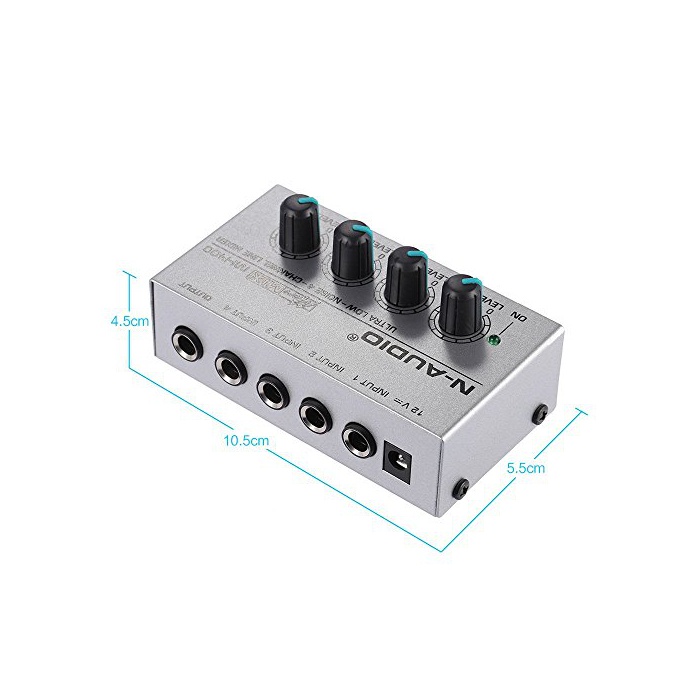 4채널 입력과 1채널 출력 MONO믹서.안정,소형,운반에 편리합니다.