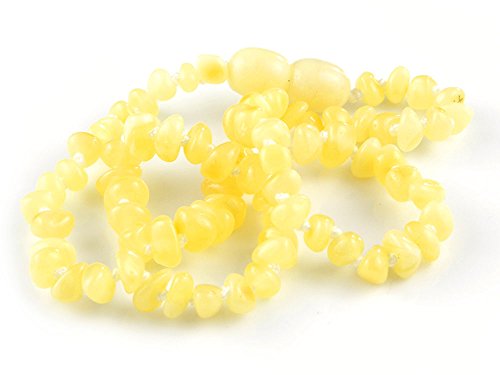 Studio : Internet Promocja Publisher : Internet Promocja Binding : Baby Product Product Description This necklace comes with a safety screw clasp and knotted string to keep beads in place. It is about 13" clasp tip to clasp tip. Regardless of safety features built into any necklace, anklet or bracelet, we recommend strongly that they should only be worn under the direct, and constant attention of a responsible adult. For centuries women in the Baltic countries have been using amber necklaces to sooth infants. Amber is a 50 million year old fossilized resin from now extinct pine trees Pinus Succinifera. It started as sap that sealed the wounds of the ancient trees, destroyed bacteria, drove off invading insects, acted as a fungicide, took inflammation from the tree and healed the wounds. Today, even in its petrified form, it is still healing, soothing, antibacterial and anti-inflammatory. The ancients called it magical. Modern science has since proven that it is the succinic acid that amber contains which is absorbed by the body when amber oils are released by body heat. Succinic acid in non volatile, odorless, colorless, and generally recognized as safe (GRAS) by the US Food and Drug Administration. It is now manufactured commercially for use in pain killing medications and cosmetics. How Amber Health Necklaces Work Your body heats the amber necklace and the low body heat causes a very effective, slow transfer of the oils and amber acid. These cling to and soak into your skin taking with them the natural chemicals that benefit your body. Natural Baltic Amber necklaces, made from raw, Amber, have been worn for centuries in Poland because of their magical powers. Their powers were described as magical by people who lived in the times before anyone knew about things such as acids and antibiotics There are no medical tests proving teething necklaces work. Just centuries of experience. 0