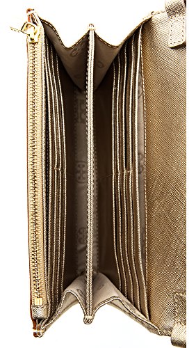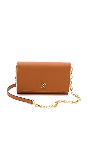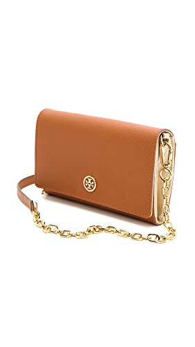 Tory Burch Robinson Metallic Chain Wallet in Luggage Brown Saffiano Leather