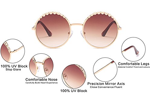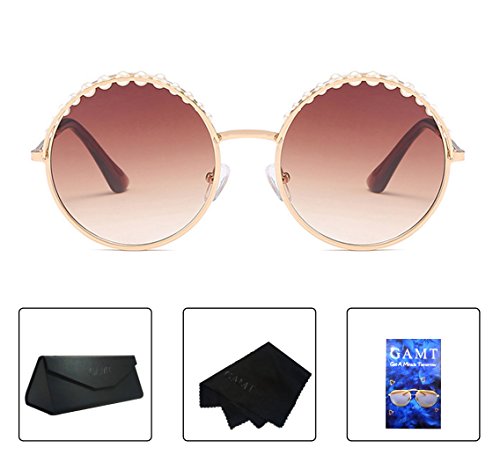 GAMT Round Sunglasses for Women Circle Pearl Mosaic Frame Vintage Shades Eyewear