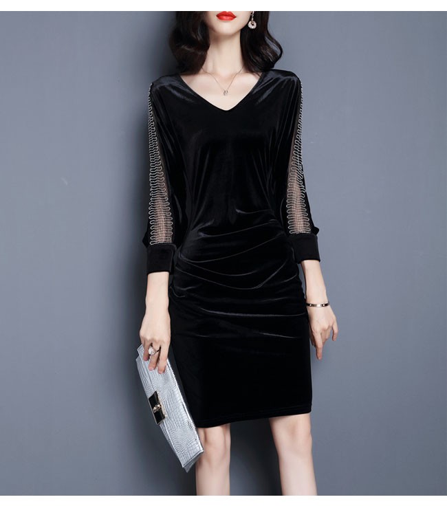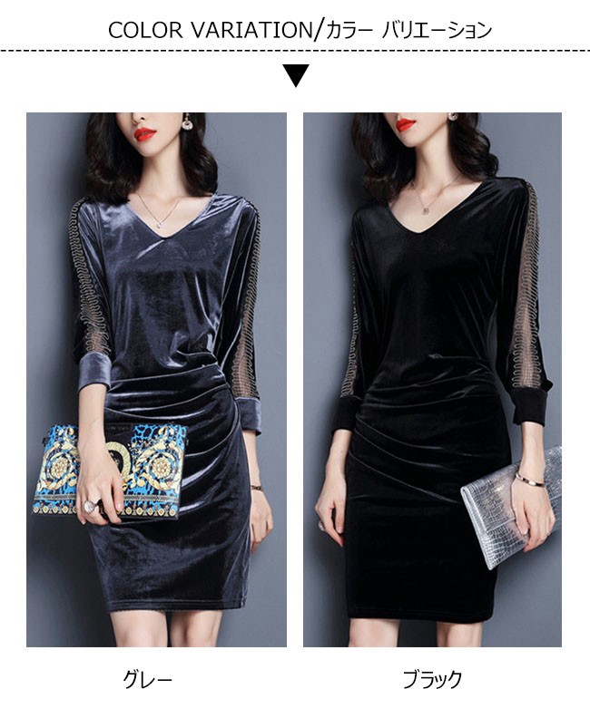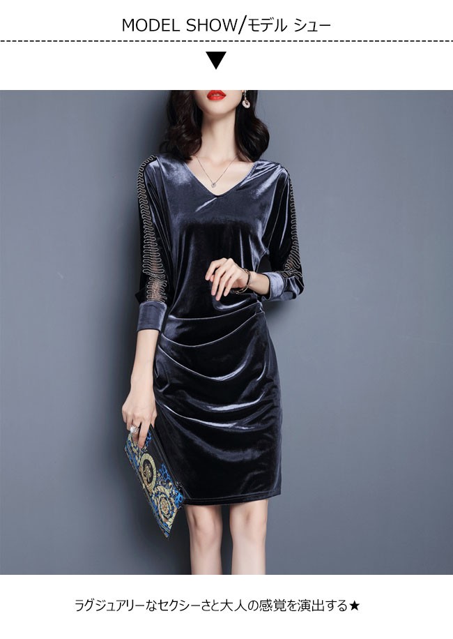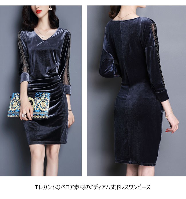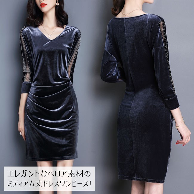 | 商品名 | セクシーワンピース ベロアワンピース ミディアムワンピース レディース 7分袖 ベルベット ミディアム 膝丈 結婚式 レース切り替え ドレス 2017秋新作 |