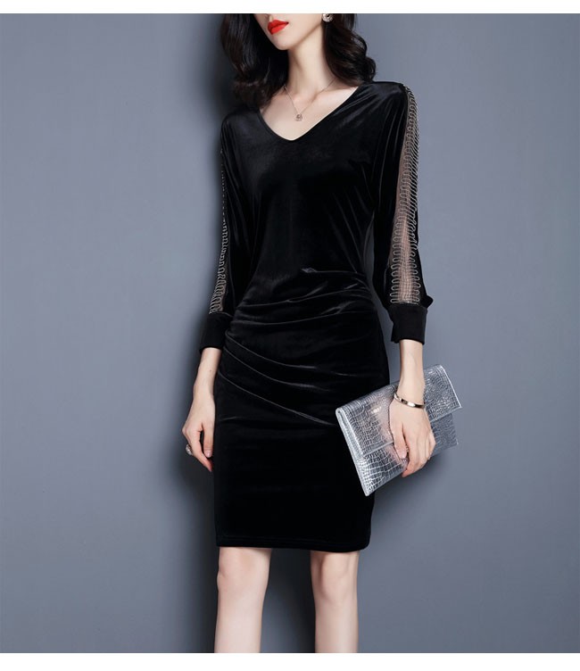 エレガントなベロア素材のミディアム丈ドレスワンピース★