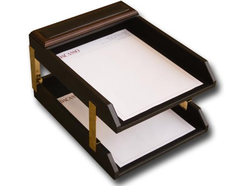 -. Title : Dacasso Leather Double Letter Trays - Walnut