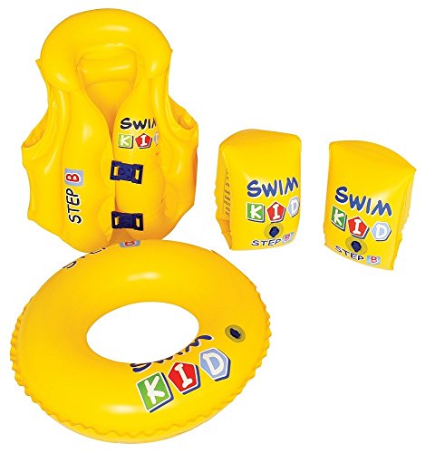 -. Feature : Swim Kid Learning Set - Includes: / * 1 Swim Vest Ages 3 - 6 / * 1 Swim Ring Deflated Size: Approx. 20" (50cm) / * 2 Arm Bands Deflated Size: Approx. 10"x6" (25x15cm)