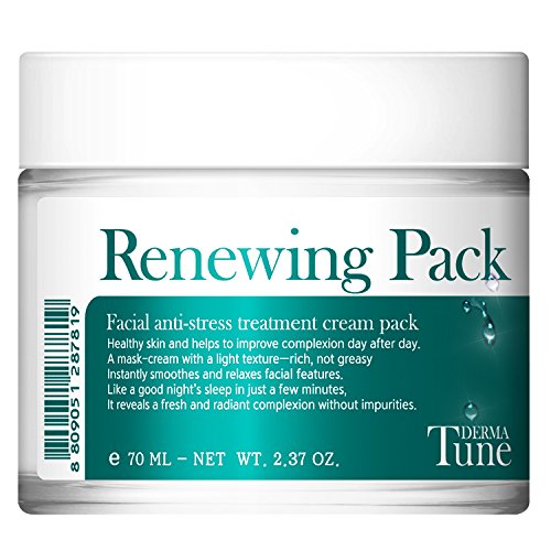 -. Binding : Misc. -. Brand : Dermatune Renewing Pack -. EAN : 0710486275969 -. Feature : Skin looks like a good night's sleep in just a few minutes. / The light mask-cream texture absorbs rapidly to smoothe wrinkles, brighten complexion, relax skin and tighten pores / A cream with a light texture-rich, not greasy 'DERMA TUNE RENEWING PACK' instantly smoothes and relaxes facial features. / Like a good night's sleep in just a few minutes, it reveals a fresh and radiant complexion without impurities. / The skin is soft, fresh and visibly smoothed. -. IsAdultProduct : 0 -. Label : Ecofresh -. Manufacturer : Ecofresh -. Model : OS00001 -. MPN : F22J1 -. PackageQuantity : 100 -. PartNumber : F22J1 -. ProductGroup : Beauty -. ProductTypeName : BEAUTY -. Publisher : Ecofresh -. Studio : Ecofresh -. Title : Dermatune Renewing Pack 70ml/2.37oz -. UPC : 710486275969