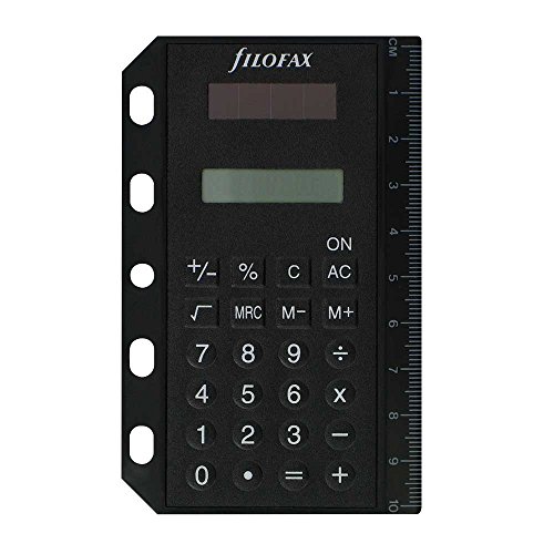 -. Feature : Filofax Calculator / Solar powered with auto-shut-off / Metric and imperial side rule / Conversion tables on reverse / Mini & Pocket / Mini et de poche