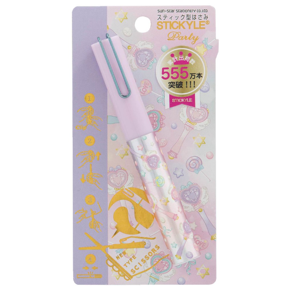 The sticky scissors party series of the Sunstar stationery is a stick type scissors useful for carrying and storing