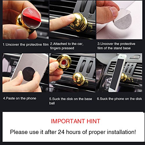 Magnetic Mount, Universal 360-degree Full Angle Ball Magnetic Car Mount Phone Holder, for Cell Phones, Galaxy S8, GPS and Mini Tablets with Fast Swift-Snap Technology (Gold)