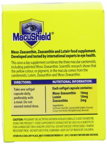 -. Binding : Health and Beauty -. Brand : Macushield -. EAN : 5053676656045 -. Feature : Uniquely contains all 3 macular pigments: Meso-Zeaxanthin, Zeaxanthin and Lutein, to rapidly enrich macular pigment at the back of the eye. / A macular pigment food supplement which enhances visual performance and supports eye health. / Enhances visual performance in terms of contrast sensitivity and glare vision. / Contains powerful antioxidants that help protect from Blue light and free radicals. / Prevents damage to the cells of the eye. Such damage is caused due to factors such as smoking, obesity, light exposure and pollution. -. IsAdultProduct : 0 -. Label : Health -. Manufacturer : Health -. Model : MCU1090 -. MPN : MCU1090 -. PackageQuantity : 1 -. PartNumber : MCU1090 -. ProductGroup : Health and Beauty -. ProductTypeName : HEALTH_PERSONAL_CARE -. Publisher : Health -. Studio : Health -. Title : Macushield With Meso-zeaxanthin For Macular Health 90 Capsules -. UPC : 890665024660