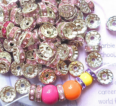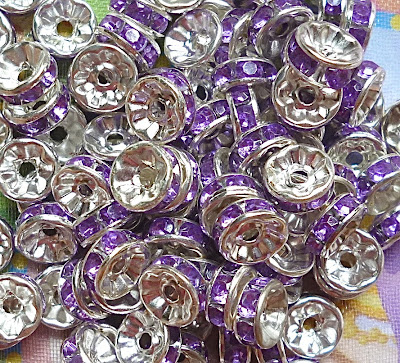 In assorted sizes. 6mm silver, 9mm Lt Purple, 9mm Cyan, 12mm Pink. 10 pcs each.