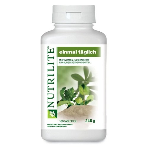 -. Feature : NUTRILITE TM Einmal Täglich enthält Vitamine, Mineralien und sorgfältig ausgewählte Pflanzenkonzentrate aus Karotten, Spinat, Brunnenkresse, Luzerne, Acerolakirsche und Petersilie und bietet die Pflanzeninhaltsstoffe, die erforderlich sind, um die Effektivität von Vitaminen zu verstärken / die Einnahme von NUTRILITE Einmal Täglich bietet ein breites Spektrum an Nährstoffen und sorgt so für ein Gleichgewicht zwischen essentiellen Vitaminen und Mineralstoffen sowie wertvollen Pflanzeninhaltsstoffen aus den exklusiven NUTRILITE TM Konzentraten / Inhalt: 180 Stück, 246 g