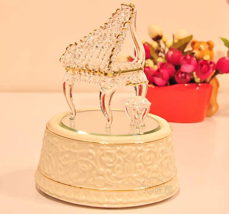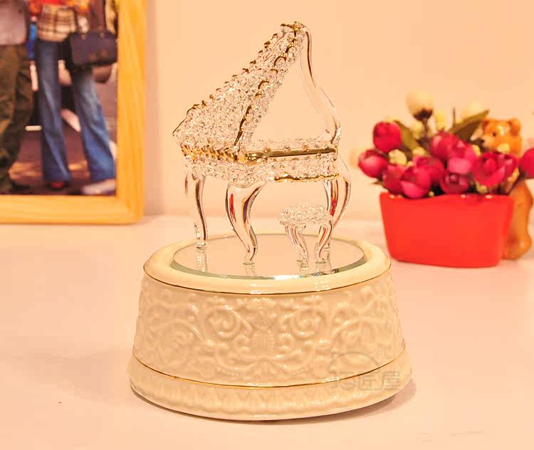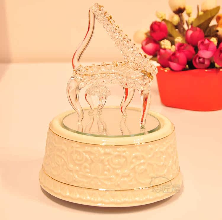 拉丝玻璃钢琴旋转音乐盒 高档树脂 内置日本sankyo音乐机芯 音乐纯正