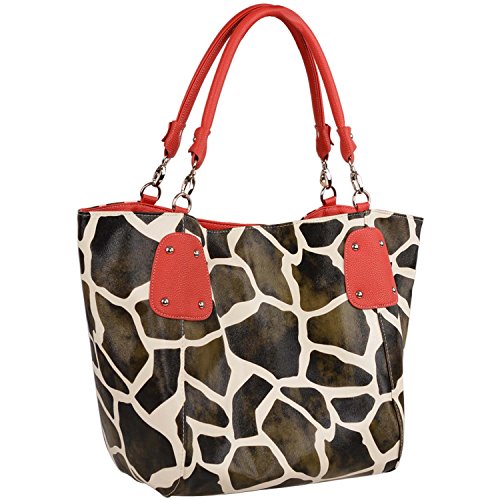 FASH Giraffe Print Faux Leather Tote Shoulder Handbag,Red,One Size