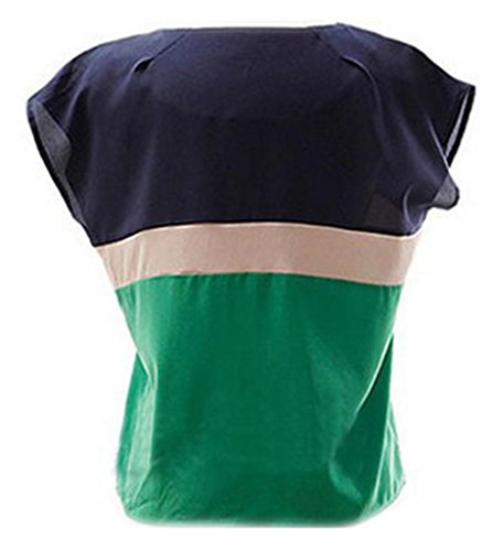 -. Title : VOBAGA® Women's Loose Casual Stripe Color Collision T-Shirt Tops Blouse Green M