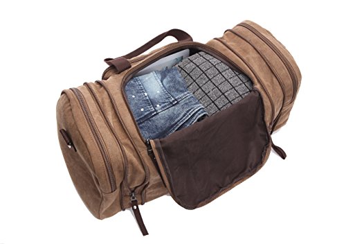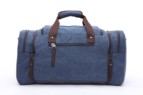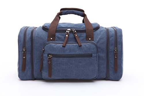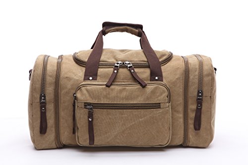 - Made of high density canvas with excellent stitching technic which makes the duffel bag strong and durable. - Exterior zip pocket allow quick access to travel documents, CD's and the things you want quick access to without having to open up the main compartment. - It's a casual fashionable style using for hiking, short trip, going out, vacation, camping, shopping and so on. 0