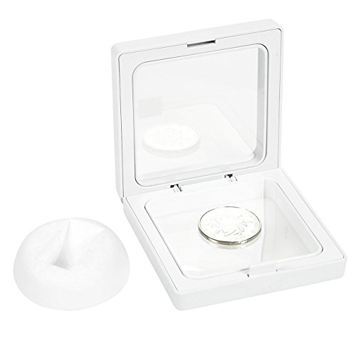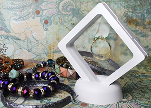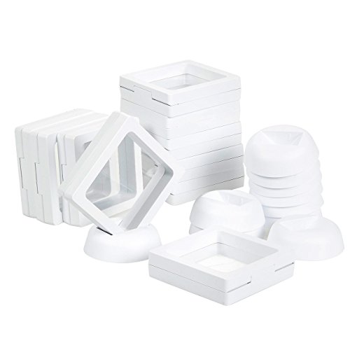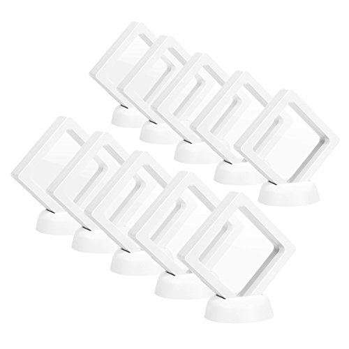 Coin Display Box - Set of 10 3D Floating Frame Display Holder with Stands for Challenge Coins, AA Medallions, Jewelry, White, 2.75 x 2.75 x 0.75 Inches