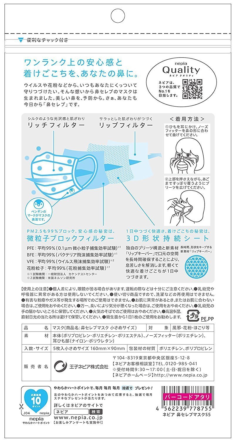 Napier nose celebrity mask smaller size 5 pieces