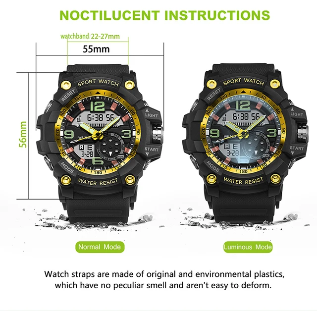| [해외] 남성 스포츠 시계 듀얼 디스플레이 아날로그 디지털 자동 방수 시계 남성 패션 시계 품질 시계 시계 스포츠 |
