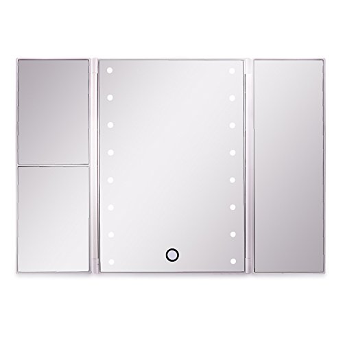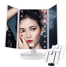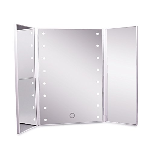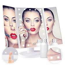 - DOOR SHAPED 3 WAY LED MIRROR, showing your hair and face at different angles. Available in BLACK and WHITE. The vanity mirror stands on your countertop can be freely adjusted and fixed,ensuring a perfect and comfortable viewing angle. Tri-fold and detachable design makes you can take it anywhere you go.