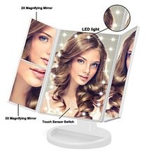 21 LED TRI Fold Make Up Folding Table Mirror 1X/ 2X/ 3X (White)