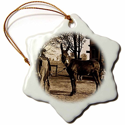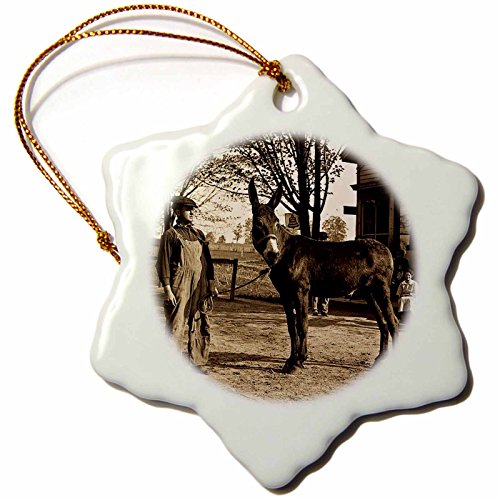 3dRose orn_16065_1 1900 Man and a Mule in Milwaukee Sepia-Snowflake Ornament, Porcelain, 3-Inch