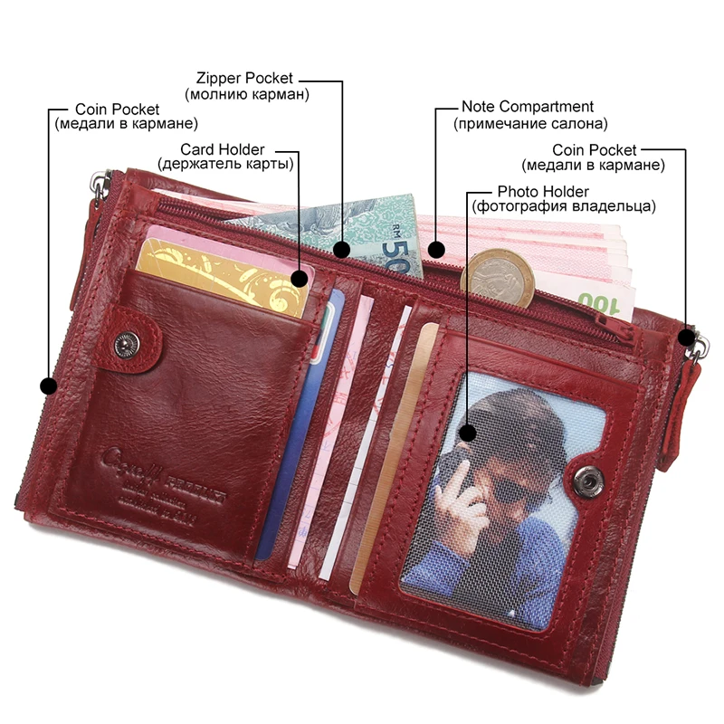 Interior:Photo Holder,Card Holder,Note Compartment,Passcard Pocket,Zipper Poucht,Coin Pocket