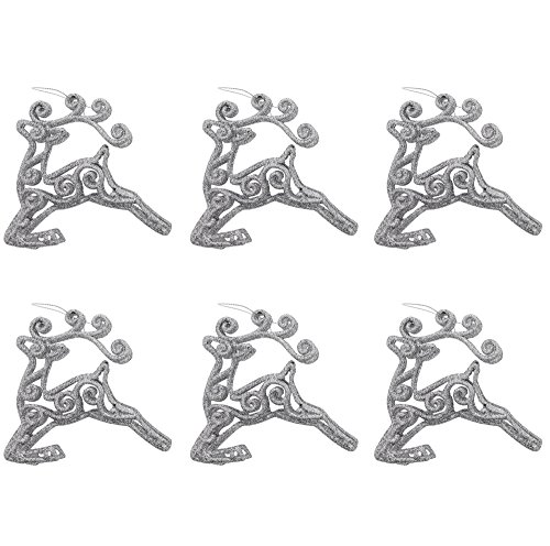 - Includes 6 Pack of Silver Glitter Reindeer Ornaments with Silver Hanging String