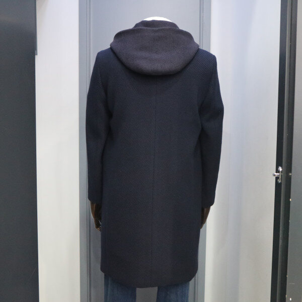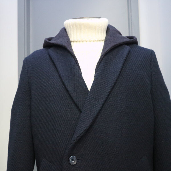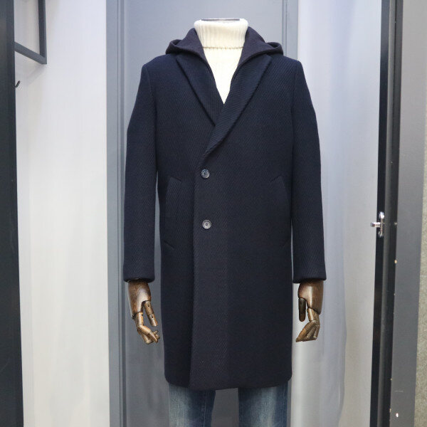 트윌 조직감원단에 니트소재로 만든 탈부착가능한 후드사양을 적용한 반더블 체스터코트 코디에 따라 캐쥬얼및 정장 착장에 스타일리쉬하게 연출 가능