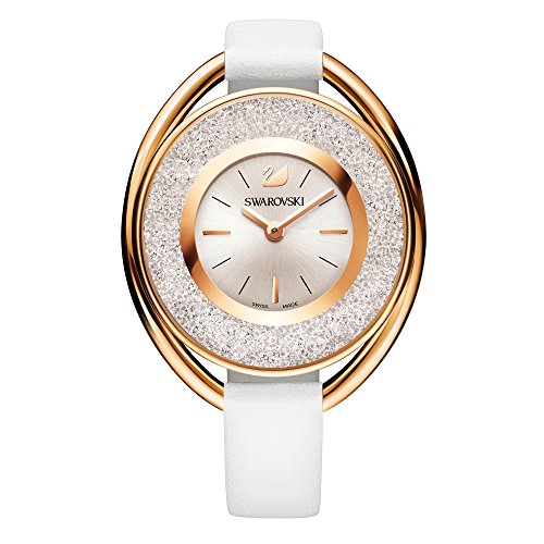 This ladies' Swarovski Crystalline Oval watch features a bold and glamorous design with a rose gold-plated case that is studded with over 1,700 clear Swarovski crystals