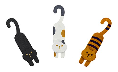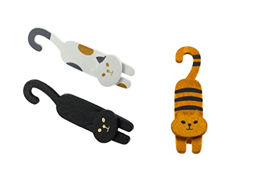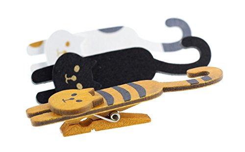 BeeChamp 3pcs Mini Wooden Cute Cat Laundry Hooks Clothes Pins Hanging Clips, Pack of 3