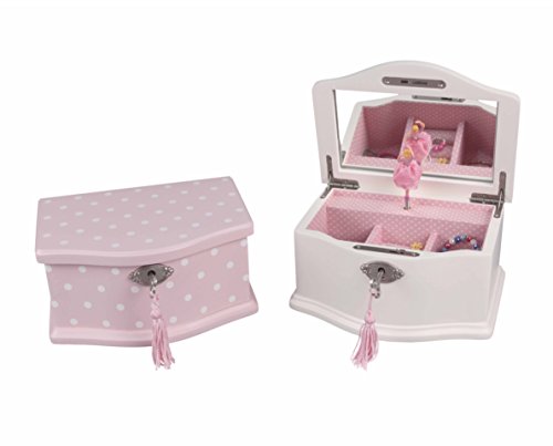 -. Binding : Kitchen -. Brand : Art Lins -. IsAutographed : 0 -. PackageQuantity : 1 -. ProductGroup : Home -. ProductTypeName : HOME -. Title : Elle Ballerina Music Jewelry Box with Lock, Small, Wooden Case, White and Pink Dot