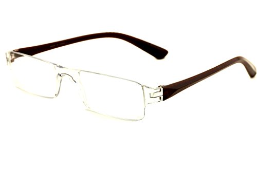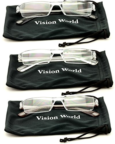 -. Feature : 3 pairs of lightweight reading glasses (clear/black/brown) / 135mm frame width, 15mm bridge, 28mm lens height, 49mm lens width. / Comes with it's own Vision World Microfiber Storage Pouch / Lightweight Durable Frame For Extended Comfort / Rimless and Non SP.R.Ing Hinge Frame