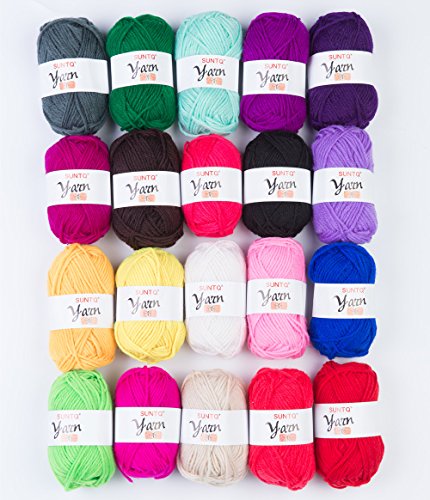 SUNTQ 100% Acrylic Yarn 20 x 50yard (total about 1000 yards) Skeins Bonbons Yarn Assorted Colors for Crochet & Knitting Assorted Rainbow Variety Colored Assortment