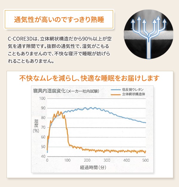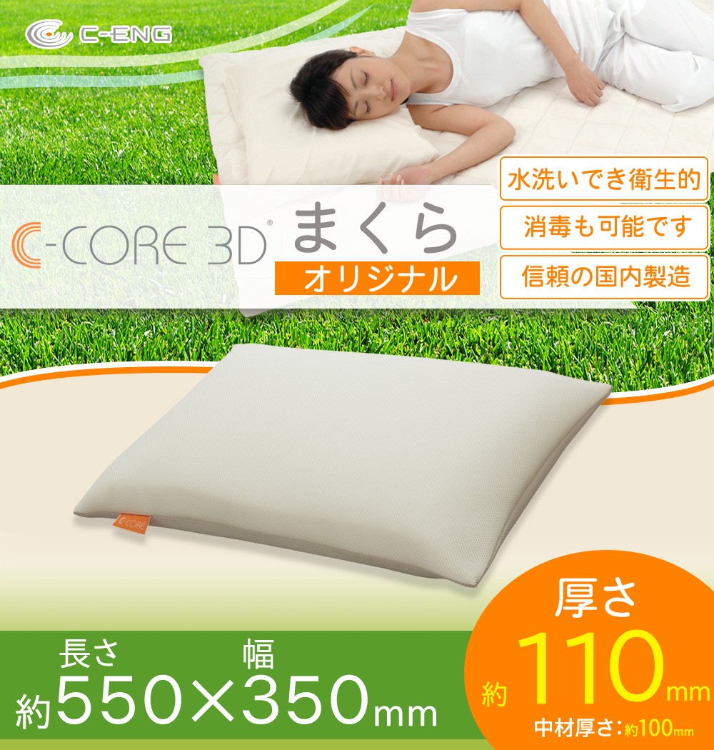 | 反発力に優れたC-CORE3Dを中材に使用したまくら。 |