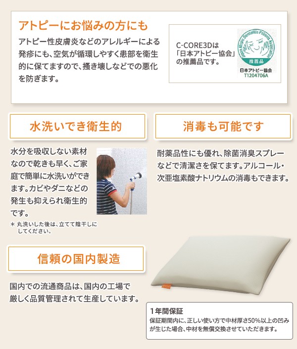 | 仕様 | 特許4350286号 日本アトピー協会T1204706A カバー&中材水洗いOK 品質保証はがき同封(保証期間:1年間) |