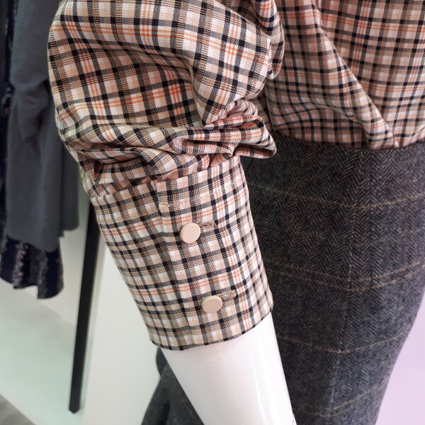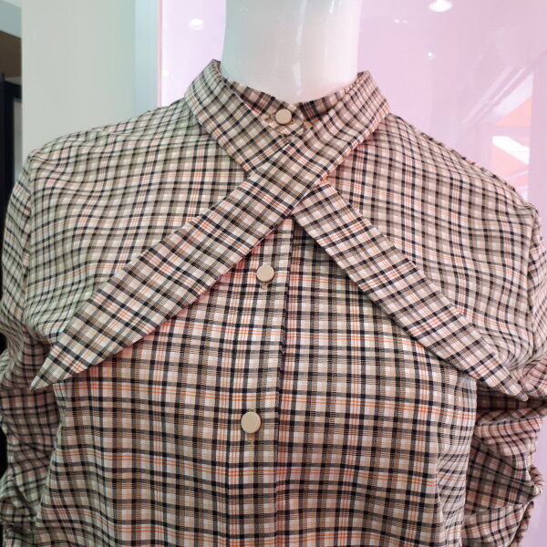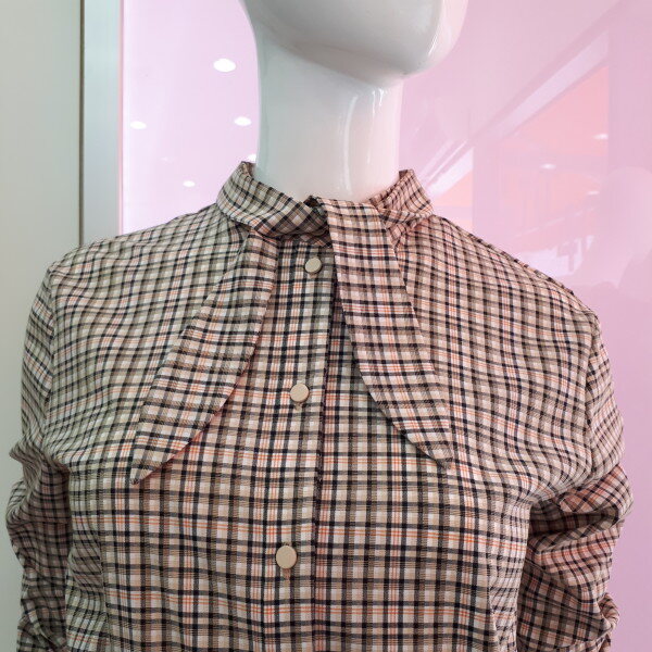 깔끔하고 예쁜 체크블라우스입니다스판감이살짝있어 편하게 입을수있으며 스커트나 바지 아무옷이나 아주잘어울려요