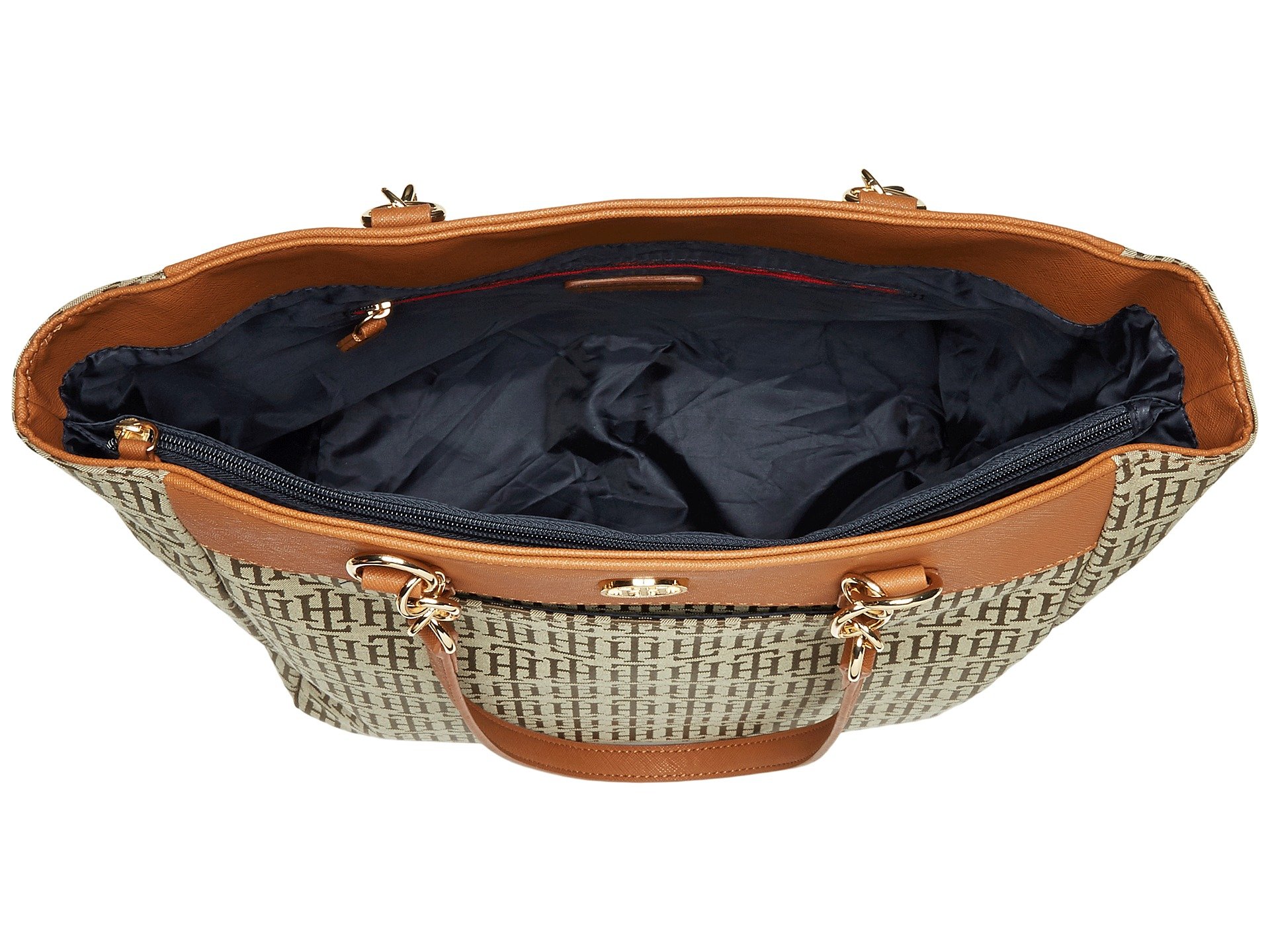 | Product Information SKU: #8996924The Tommy Hilfiger? Evaline Convertible Tote is the perfect shopping accessory! Textile construction with faux-leather trim.Two shoulder straps.Exterior boasts brand metal decor and slip pocket.Flat bottom.Lined interior features two zipper pocket and a slip pocket.Imported.This product may have a manufacturer's warranty. Please visit the manufacturer's website or contact us at warranty@support.zappos.com for full manufacturer warranty details.Measurements: Bottom Width: 10 1?2 in Depth: 5 1?2 in Height: 11 1?2 in Strap Length: 25 in Strap Drop: 12 in Weight: 1 lb 3.2 oz |