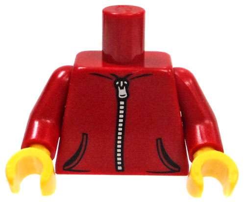 -. Title : LEGO Minifigure Parts Red Hoodie with Silver Sipper Loose Torso [Loose]