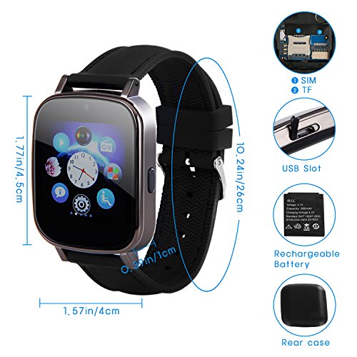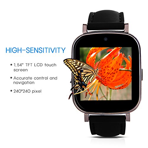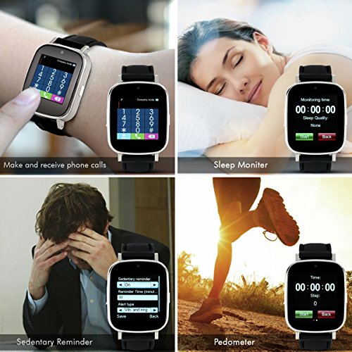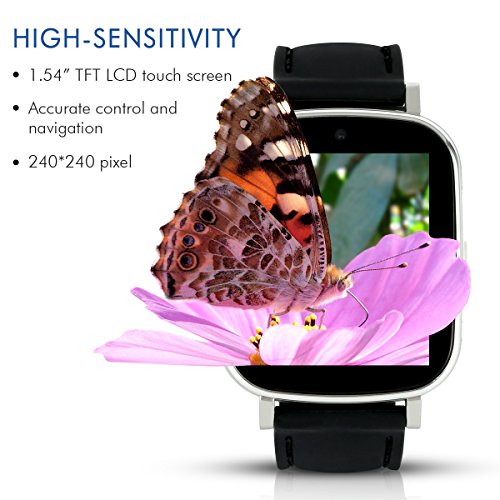-. Feature : ?DISPLAY?--- 1.54" TFT LCD touch screen with resolution of 240 x 240 offers accurate control and navigation. / ?CALLING FEATURES?--- Make and receive phone calls through Bluetooth connection with your phone. Or simply install SIM card to Hiwatch to enjoy the same features. / ?HEALTH FEATURES?--- Sedentary reminder that reminds you to move around in a designated time. Pedometer records steps, burnt calories, walking speed, walking distance, and time duration. Sleep monitor tracks sleeping quality. / ?SMART PHONE FEATURES (Android phones only)?--- Hands-free calling, text message, phonebook sync, music player, and notification alerts for weather, social media, email, texts and calls.?In order to improve the standby time, please close the unused applications and the bluetooth should remain off when you don't need to use them? / ?HIWATCH FEATURES?--- Stopwatch, sedentary reminder, pedometer, sleep monitor, camera, music player, calendar, calculator, alarm clock, web browser (with SIM card), and video recorder. 8G Micro SD included.WARRANTY- 12-month warranty repair warranty, 2-month hassle-free return.