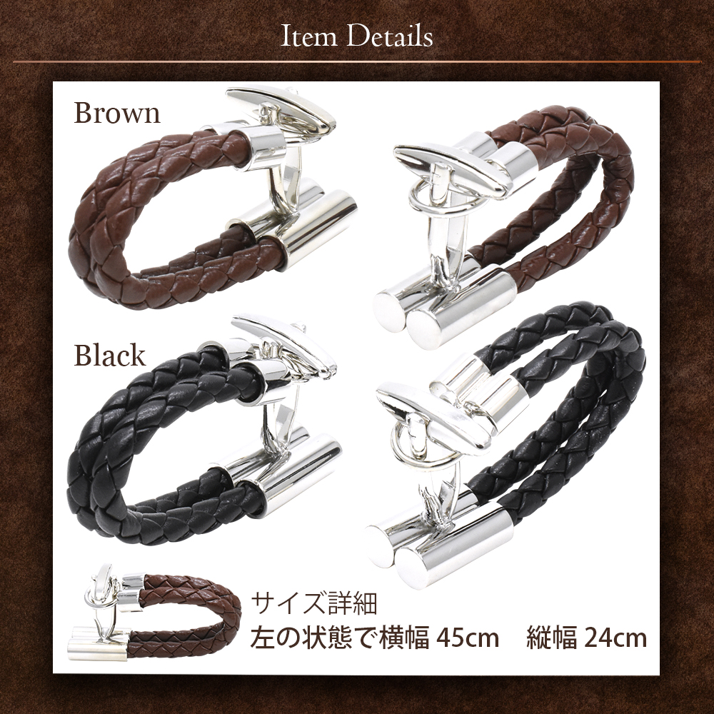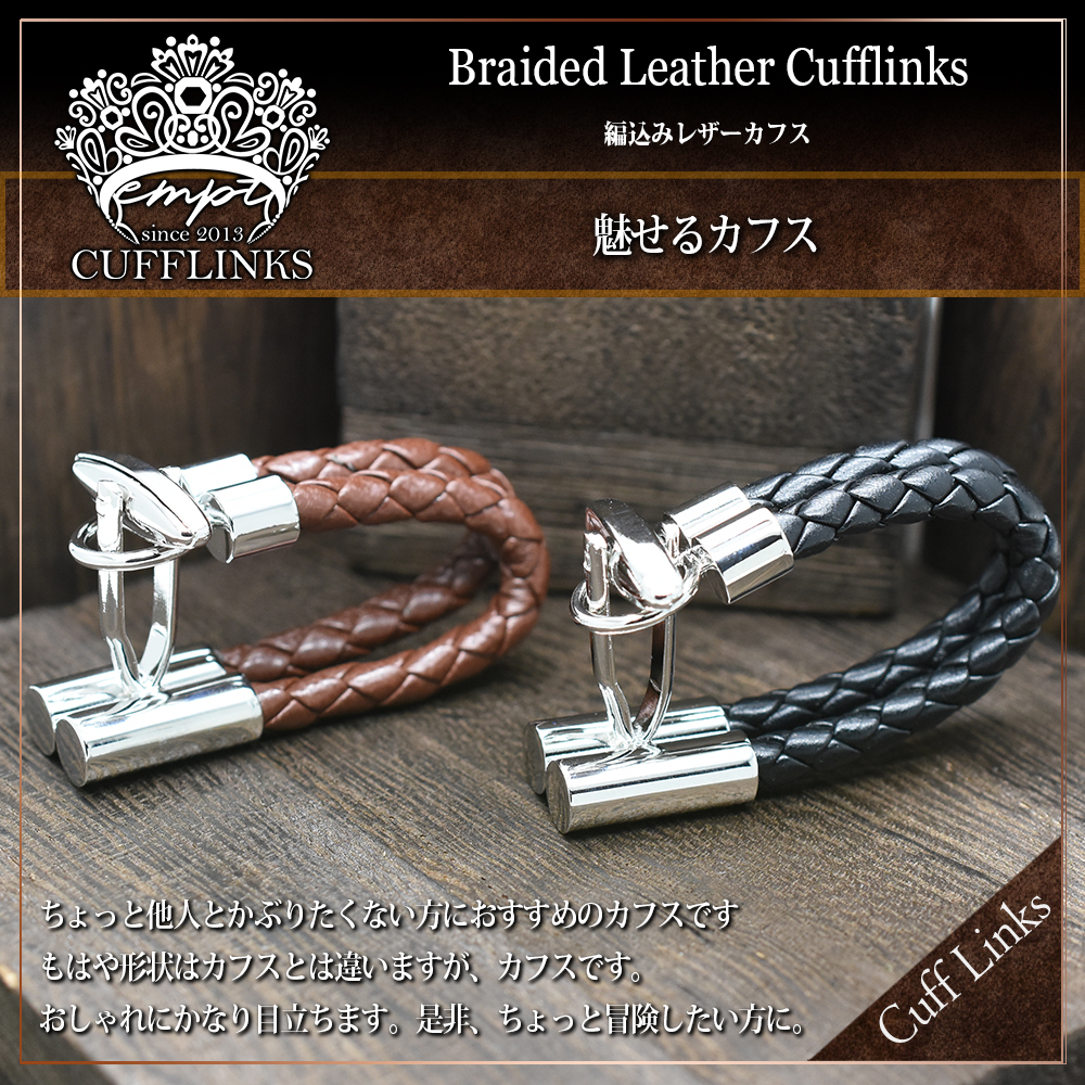 ■ 商品名 : 編込み レザーカフス カフスボタン