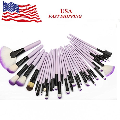 Professional Makeup Brush Set| Vander Cosmetic 32pc Pro Makeup Make Up Cosmetic Brush Set Kit + Leather Case (Purple)