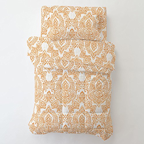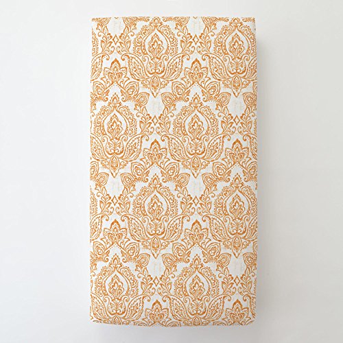 Studio : Carousel Designs Publisher : Carousel Designs Binding : Baby Product Product Description Fitted bottom sheet in White and Orange Vintage Damask. Our fitted toddler sheets feature deep pockets to hug mattresses securely. Fits toddler beds using standard crib mattresses measuring approximately 28" x 52". 0