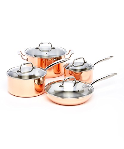 EXCELSTEEL 546 PROFESSIONAL 8-PIECE TRIPLY COOKWARE SET WITH STAINLESS STEEL CAST HANDLES AND KNOBS, COPPER