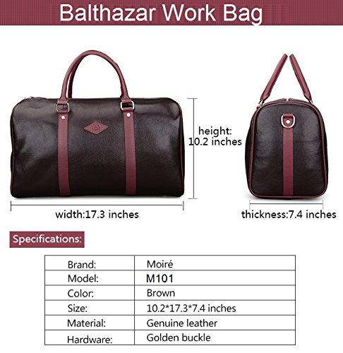 -. Feature : Authentic Moiré Travel duffel Bag:Handcrafted 100% Genuine Premium Leather messenger bag with Rust free metal hardware. Includes CERTIFICATE OF AUTHENTICITY unique numbered card / Versatile and Stylish weekend bag: carries clothes, laptops, tablets, magazines, cell phone, gym attire,etc. Luxury gift Or Present For Valentine'S Day,Father'S Day,Teachers' Day,Thanksgiving, Christmas, Birthday Or Almost Any Other Occasion. / Modern travel duffel bag is also a Messenger bag with design that exudes suaveness and character of Moiré. Designed in California. / Five compartments to fit your utilities. Waterproof and wrinkle-free material will last any journey ahead. / Measures: 17.3x10.2x7.4 inches Spacious and compact design ONE YEAR WARRANTY