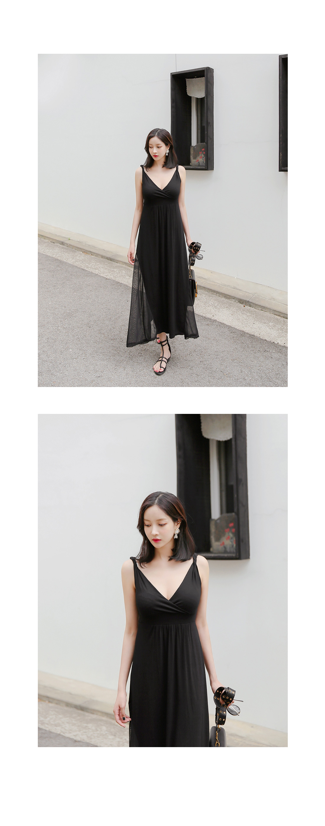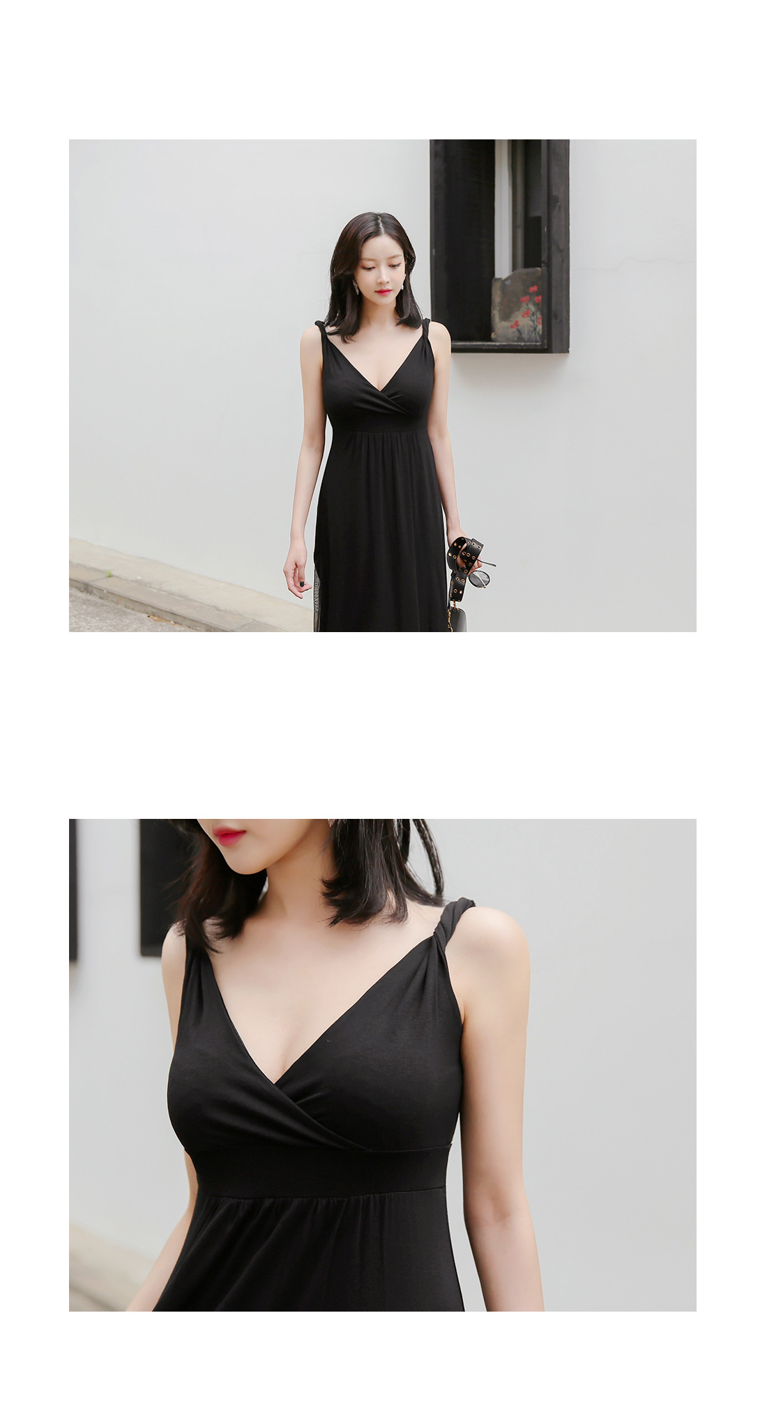 고급스러운 분위기의 쉬폰소재와 어깨의 꼬임디테일이 페미닌룩의 스타일을 더해주는 원피스 아이템이예요^^깊은 브이넥과 어깨 꼬임디테일로 쇄골라인과 어깨라인이 돋보이는 페미닌룩을완성해드리는 원피스 아이템이랍니다~여유있는 핏감이지만 허리라인을 잡아주어슬림하고 볼륨감있는 바디라인을 완성해주는 원피스예요~밑단 양사이드에 쉬폰 디테일이 가미되어움직일때마다 레그라인을 살짝 보여주어 남친들에게 사랑을 받는 룩이랍니다~