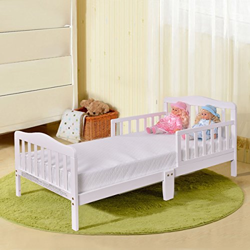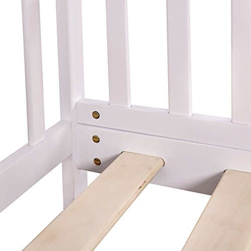 (Costzon)/Kids' Furniture Room Decor/Bed Frames, Headboards Footboards/DIRECT FROM USA/Costzon Wood Kids Bedframe Toddler Children Sleeping Bedroom Furniture w/Safety Rail Fence (White)