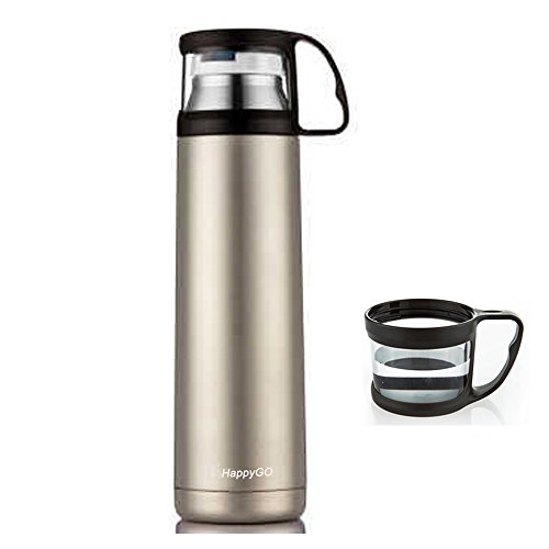 -. Title : HappyGo Vacuum Insulated Water Bottle Stainless Steel Travel Mug Beverage Bottles No BPA Leak Proof Thermos with Handle Cup for Hot or Cold Drinks 16oz