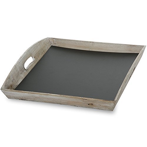 The Lucky Clover Trading Square Tray Basket with Chalkboard Bottom, 16.25" L, Smokey Gray
