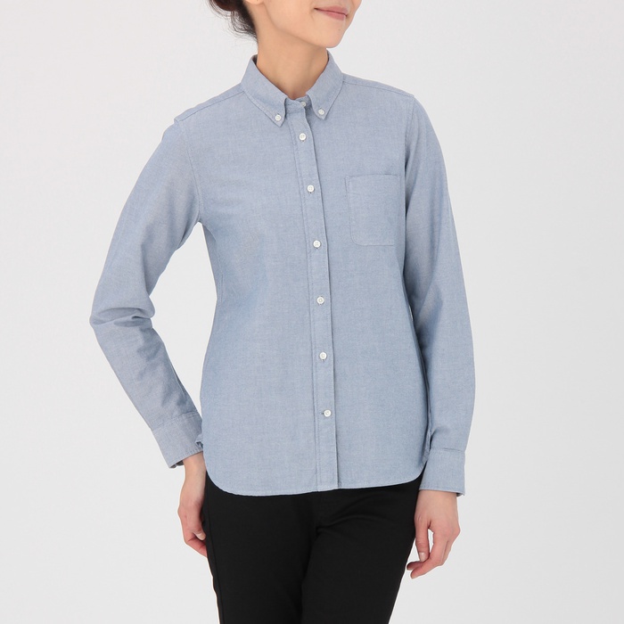 Muji 【넷 한정】오거닉 코튼 색이 바램 옥스 버튼 다운 셔츠【사이즈확 부인XXL네이비 편의점 수취가